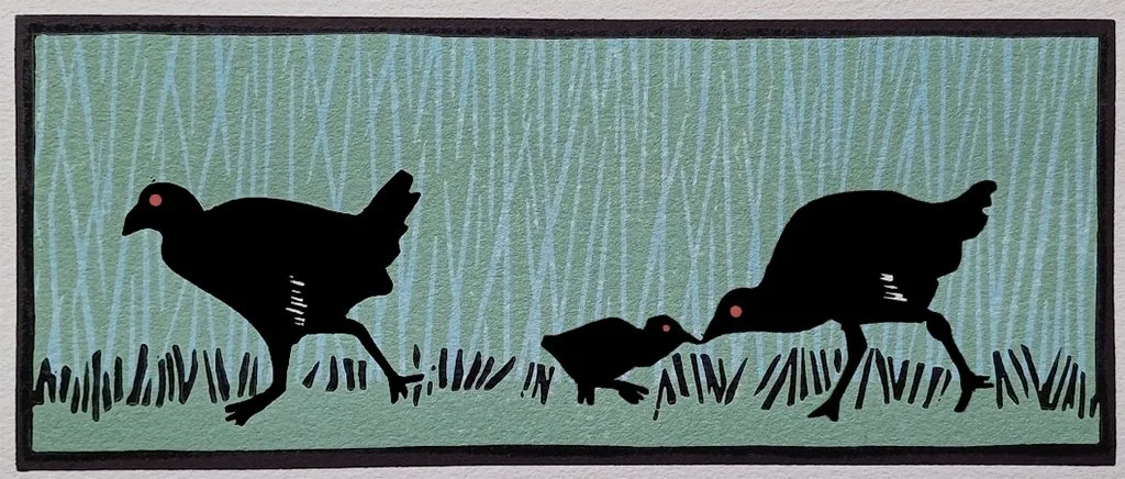 A small limited edition of unique art works are created from the blocks, each one with its own subtle difference. Each image takes many weeks to produce, from the intricate carving process to the pressing of inked plates on to heavy cotton paper. Every colour requires several days of drying before the next layer can be added, making a multi-colour work a lengthy process. Carlton says ‘It’s always rewarding to complete the final colour and finally see the image complete and come to life’.